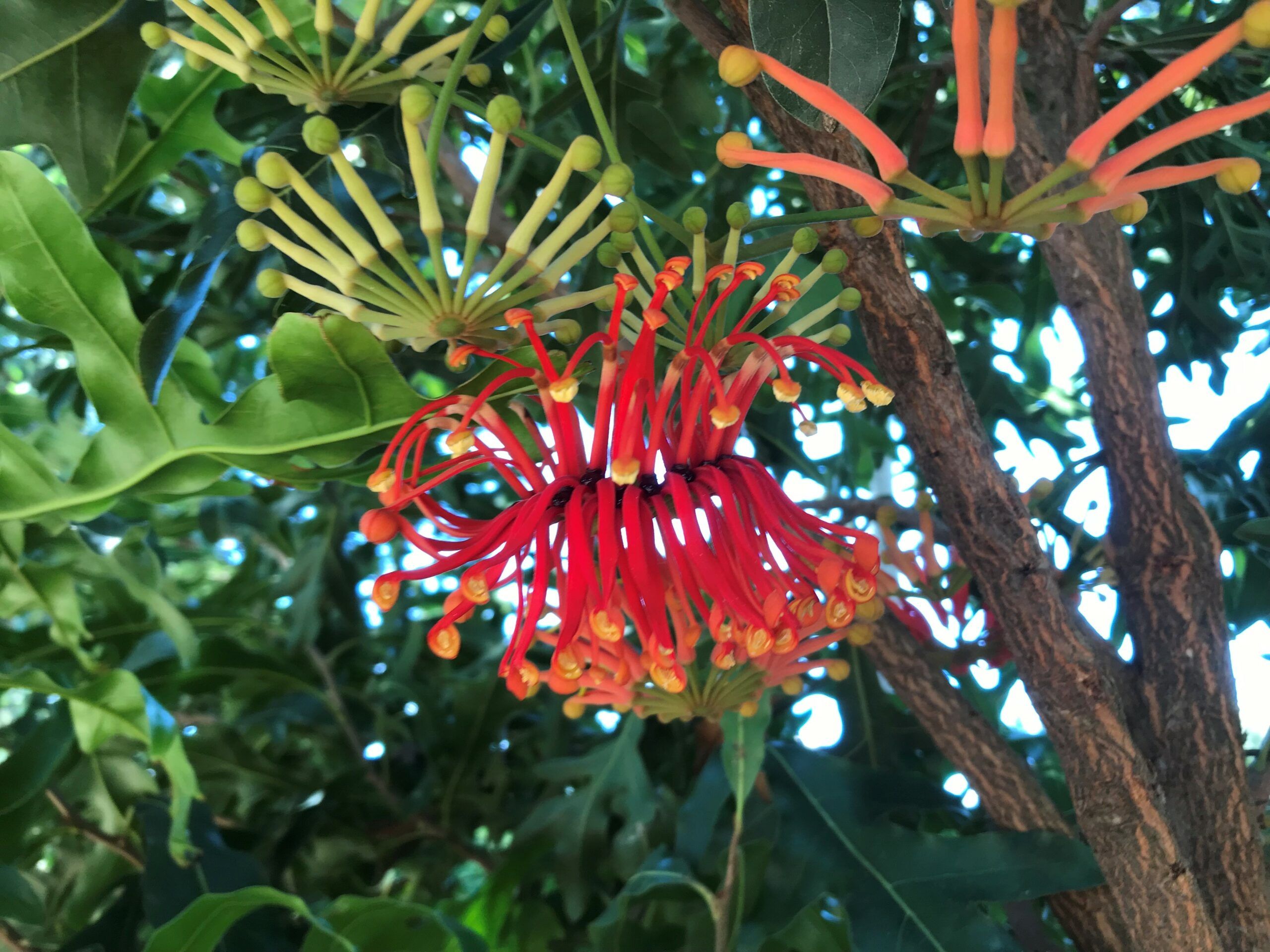 Adaptable erect rainforest tree; dark green, glossy leaves; highly fragrant, cream to burnt-orange flowers in Sp-S. Fast-growing. Will grow larger with age.