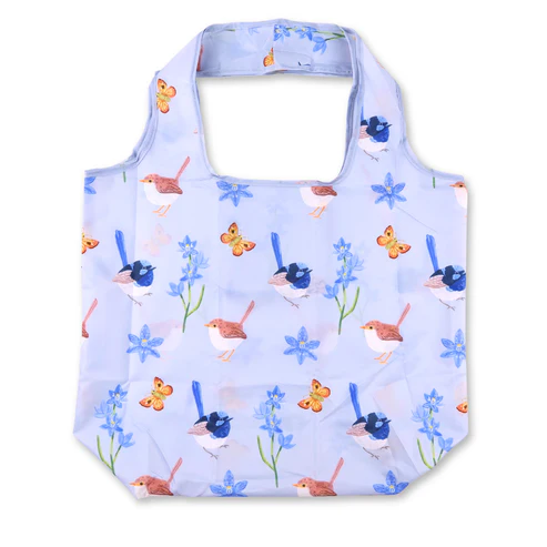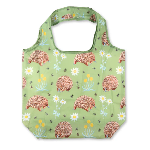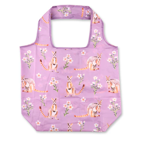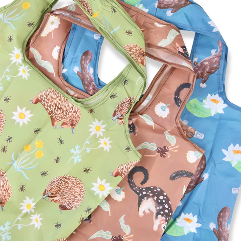 These reusable shopping bags are designed for everyday convenience and are strong, lightweight and made from recycled plastic bottles. Each bag features original Pixie Nut Australian designs, combining sustainability with style.