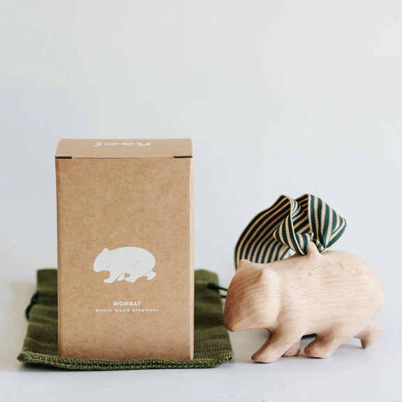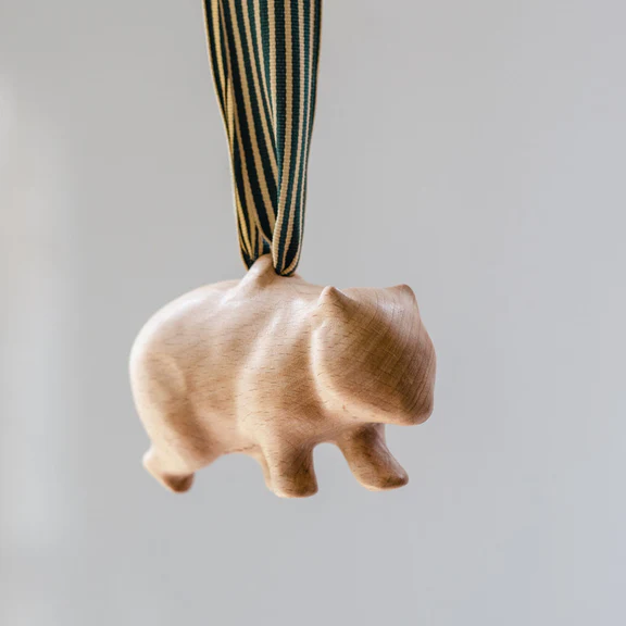 Each ornament is precision-crafted from solid beech wood in Australia, then finished with a ribbon loop for effortless hanging on your tree, mantel, or in a festive display. The Platypus design (110 × 60 × 60 mm) invites playful charm, while the Wombat version complements with gentle whimsy and texture.