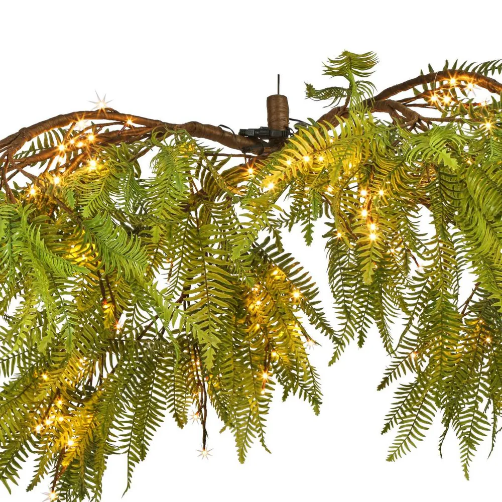 This lush artificial hanging fern spans approximately 150 cm in length × 150 cm in width × 70 cm in height and features integrated LED lighting, making it ideal for dramatic decorative displays. With lightweight construction and ready-to-hang design, it’s perfect for high ceilings, trees, doorways or statement corners.