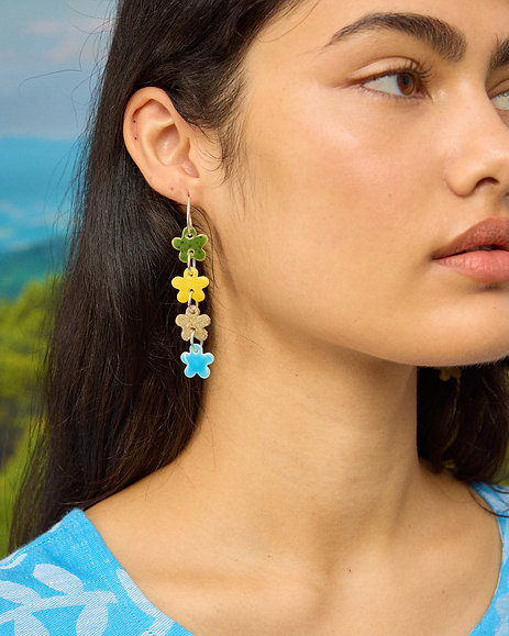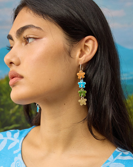 The Flower Chainmail Drops feature lightweight hand built ceramic pieces strung together and suspended on 16mm sterling silver sleepers.
