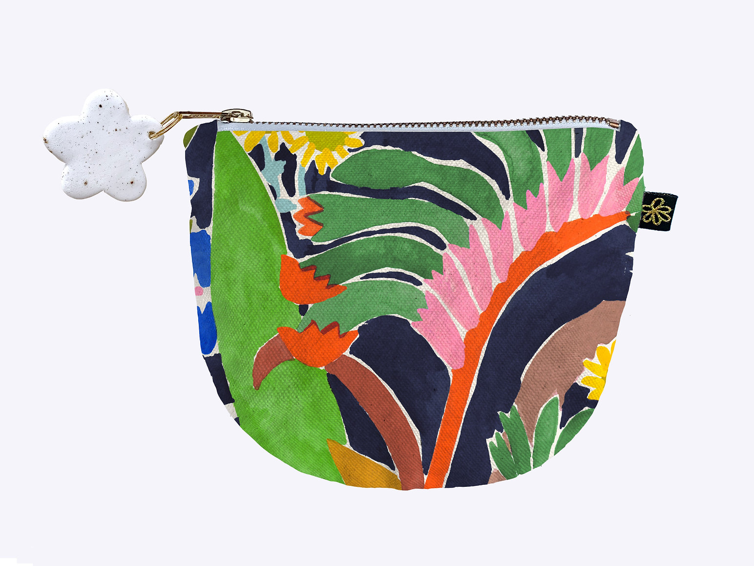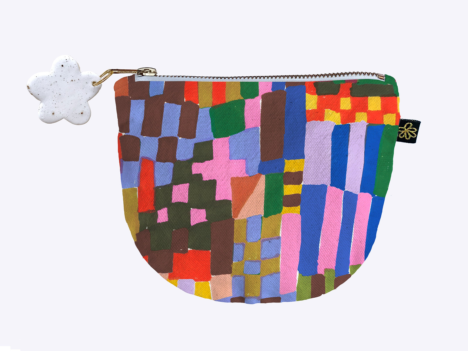 The Everyday Purse features an eye-catching original Togetherness textile design printed onto sturdy cotton canvas. Topped off with a chunky gold zip closure and handmade ceramic pendant, this purse is a delightful number, great to give as a gift or keep for yourself.