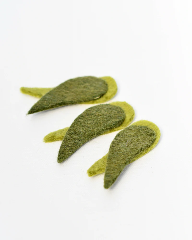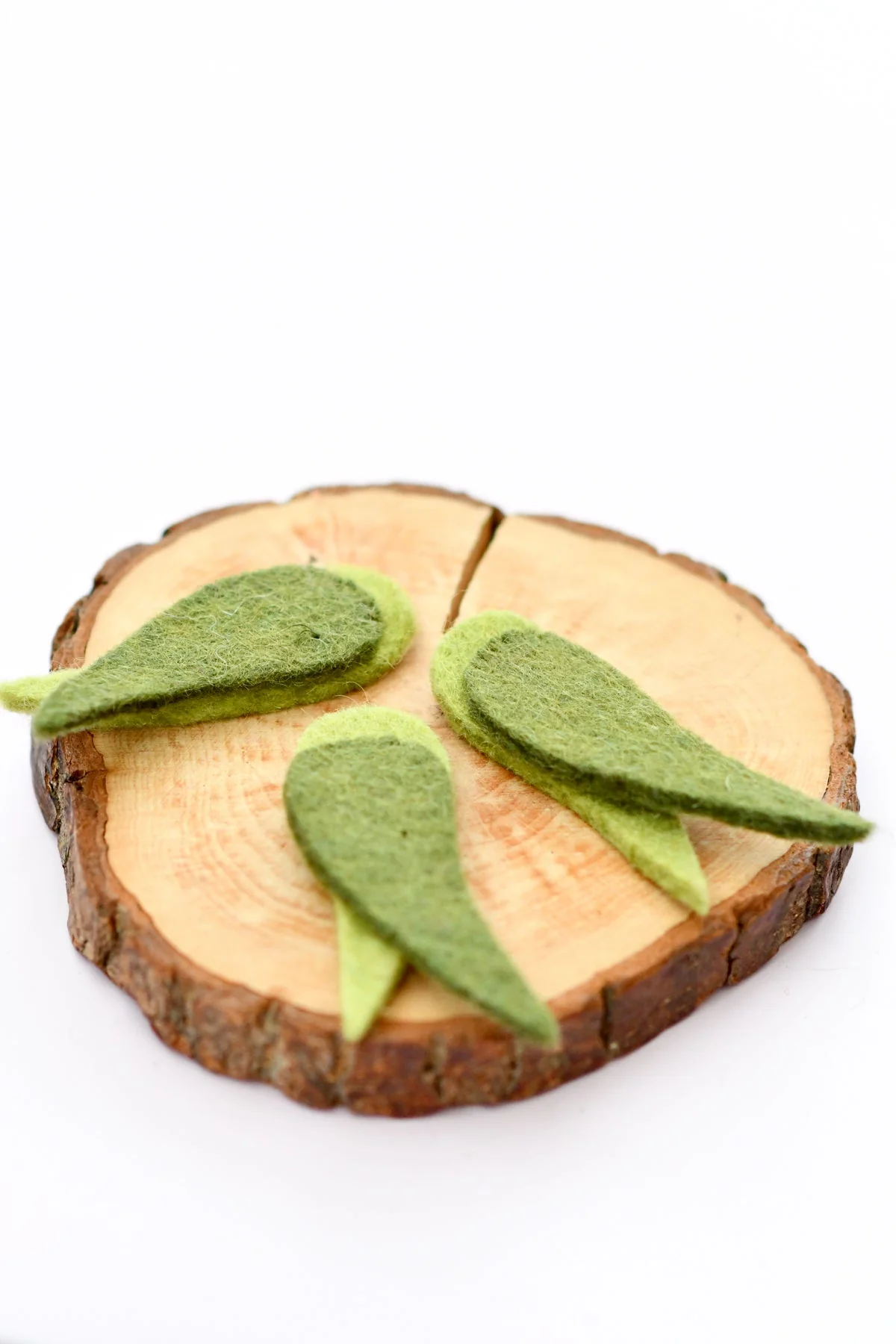 Felt Australian gum leaves are a striking representation of the iconic eucalyptus trees that are so prevalent in the Australian landscape. These leaves are crafted from wool felt fabric, carefully cut and shaped to capture the distinctive shape and texture of each leaf.