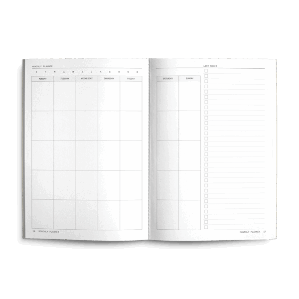 Thanks to its thread-sewn binding, the planner lays flat on your desk. No bending or fighting with pages. Just open and write.