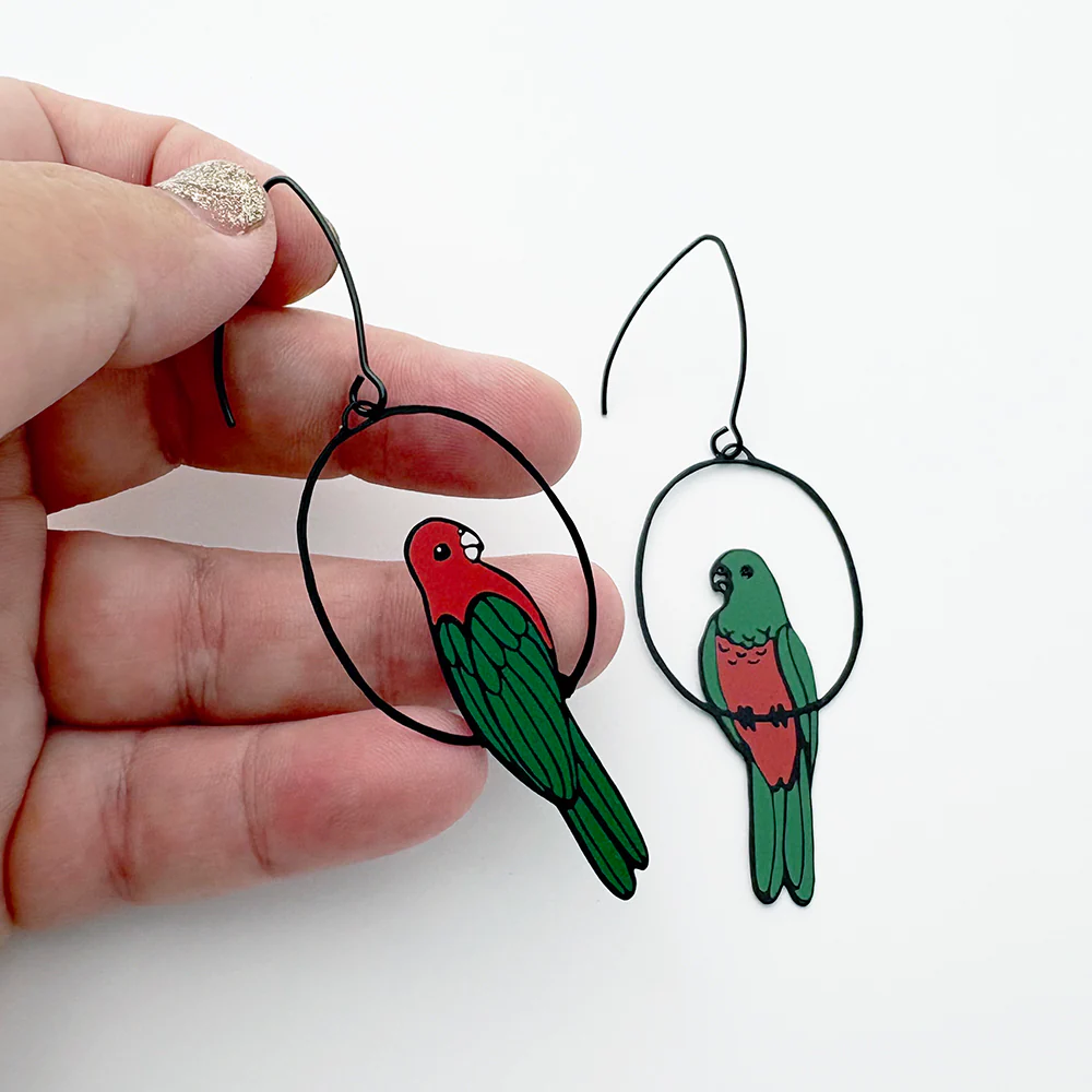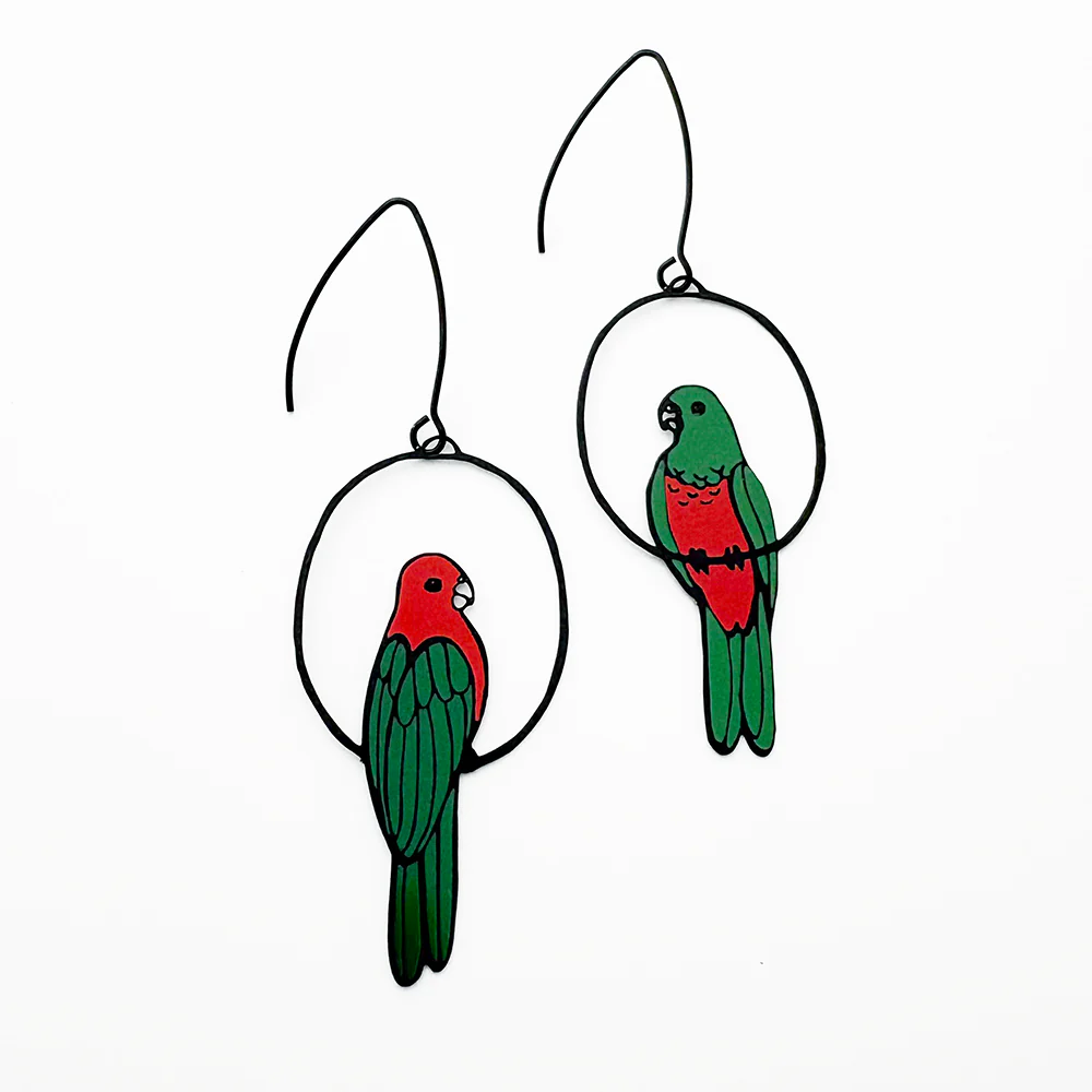 Style Tips: Inspired by the majestic King Parrot, this design celebrates the stunning contrast between male and female plumage. Whether you love birdwatching or simply appreciate unique, artful accessories, the King Parrot Earrings are a wearable tribute to Australia’s incredible wildlife.