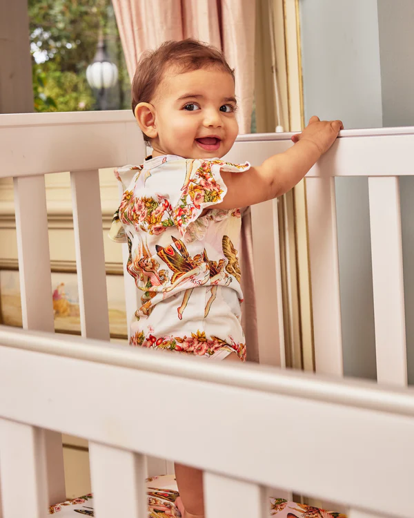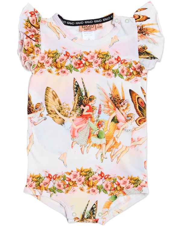 Soft and playful, with a dusting of the make-believe. Our Kip&Co x Fairyland Fairy Friends Forever Organic Short Sleeve Frill Romper wraps tiny adventurers in iconic Australian illustrator, Ida Rentoul Outhwaite’s storybook designs. Perfect for naptime, playtime – or floating through imaginary fairy forests.