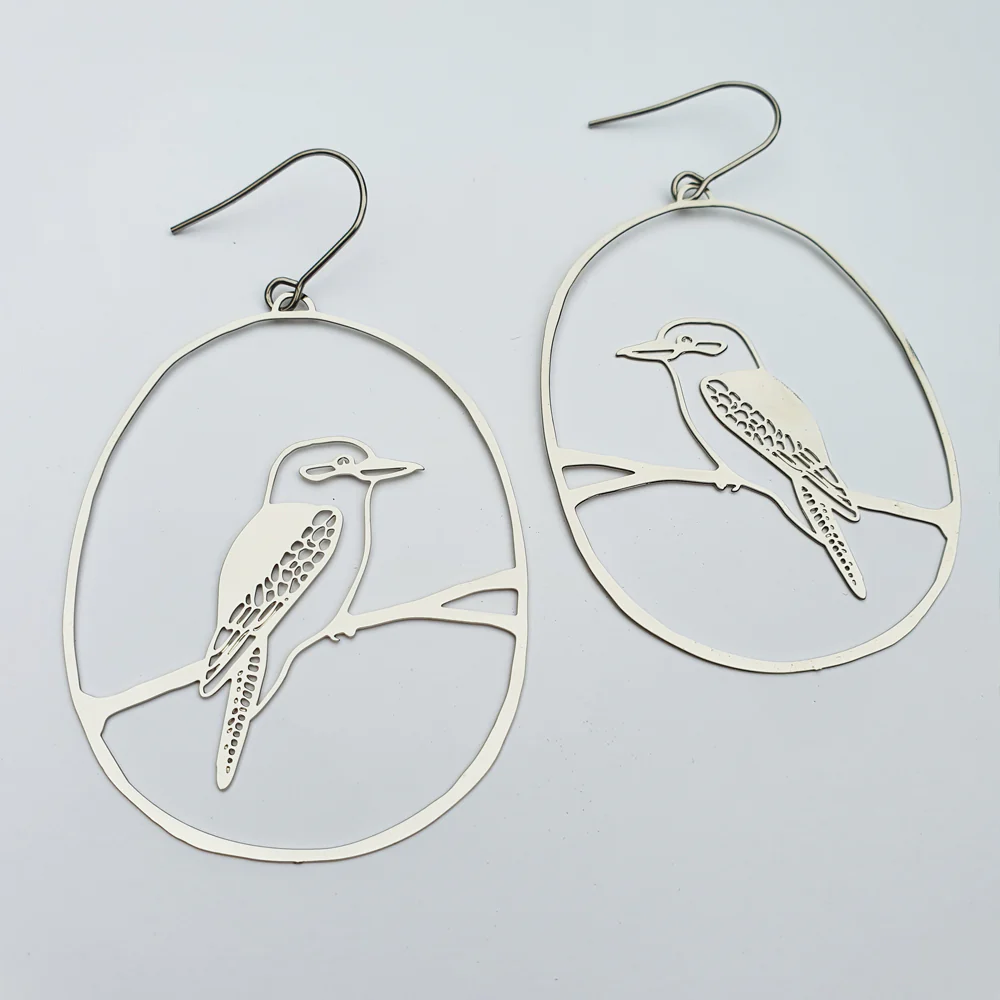 Bring a little laughter to your lobes with our Kookaburra Earrings in stunning silver and gold. Featuring a hand-drawn hoop design with a kookaburra perched proudly on a branch across the centre, these earrings are a tribute to one of Australia’s most iconic birds. Crafted from super thin recycled stainless steel, they’re ultra-lightweight and designed for all-day comfort.