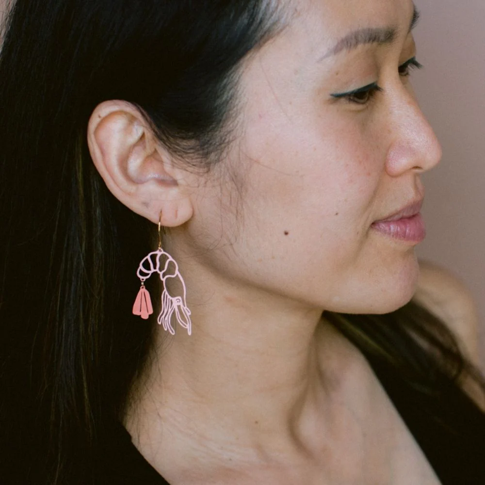 Festive, fun, and oh-so-Aussie, our Midi Prawn Dangle Earrings are the ultimate summer Christmas accessory. Designed in a bold coral shade, these earrings feature a hand-drawn side profile of a prawn, complete with a dangling tail that brings a playful bit of movement to your look. Made from super thin recycled stainless steel, they’re lightweight, hypoallergenic, and guaranteed to get a laugh (and a compliment) at Christmas lunch.