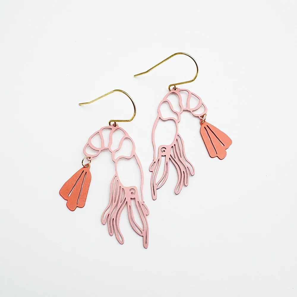 Midi Prawn dangle earrings in Coral