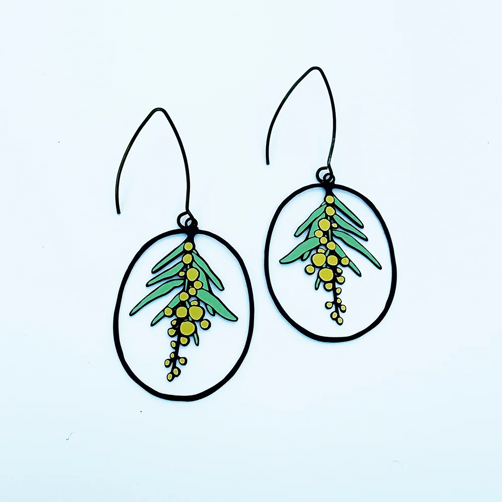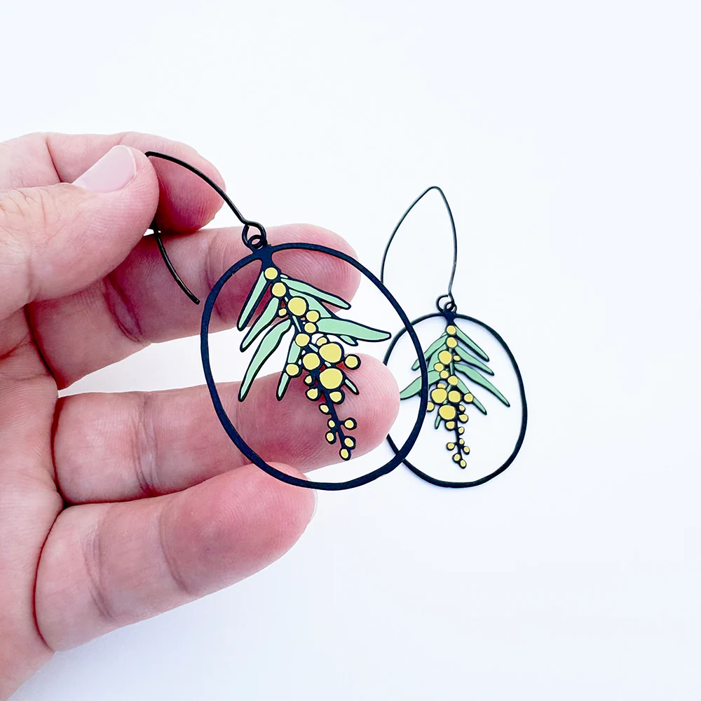 Embrace the spirit of resilience and renewal with our Wattle Flower Earrings. Inspired by the Australian Wattle, these earrings symbolize strength and the ability to thrive, making them a profound emblem of rebirth. Crafted from super thin recycled stainless steel, they feature a striking black base highlighted by vibrant yellow and green details, capturing the lively essence of the Wattle flower.