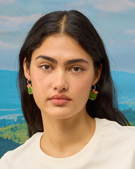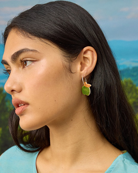 The Apple mini hoop earrings feature lightweight hand built ceramic pieces suspended on 16mm sterling silver sleepers.