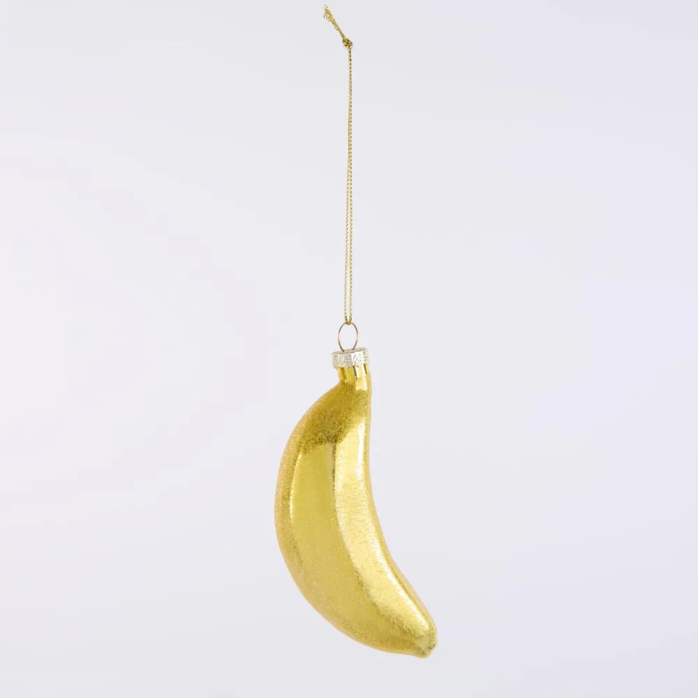 This curated range features beautifully detailed ornaments in the shapes of iconic produce: a strawberry, a chilli, a lemon, a banana and peas in a pod — each finished with a textured “sugared” aesthetic and hanging loop for effortless styling.
