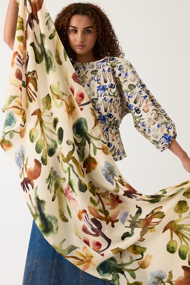 Keeping you warm with the softest wool crepe. Featuring the stunning artwork of Wendy McDonald and in house prints.