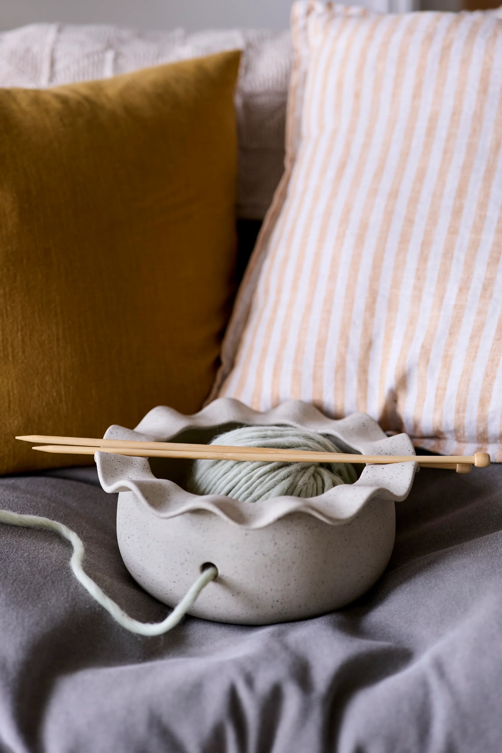 Designed for knitters, this bowl lets your yarn move freely while staying securely in place.